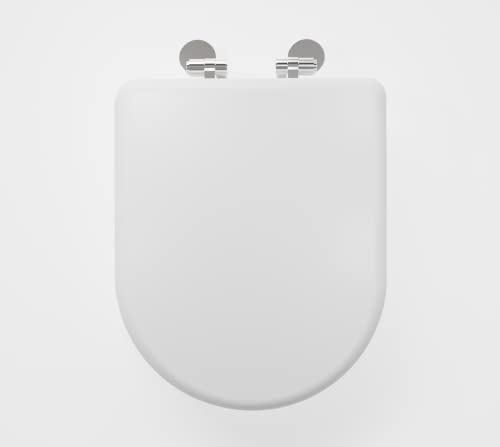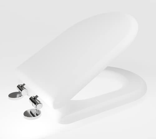 Adshank Toilet Seat Cover, World Class , Luxurious and Premium Quality | White effect/finish | Adaptable/Suitable for D shaped Commode Toilet EWC design | made from Re-engineered or Recycled Eco-friendly Wood material | Model : AI 2004D 00 PTPn | With complete factory fitted Non Soft Close hinges and Seat Cover fixing hardware kit included.