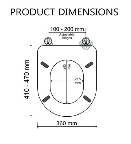 4 Buffers on Seat ring for Stability. Strong Stainless Steel Hinges for long life.