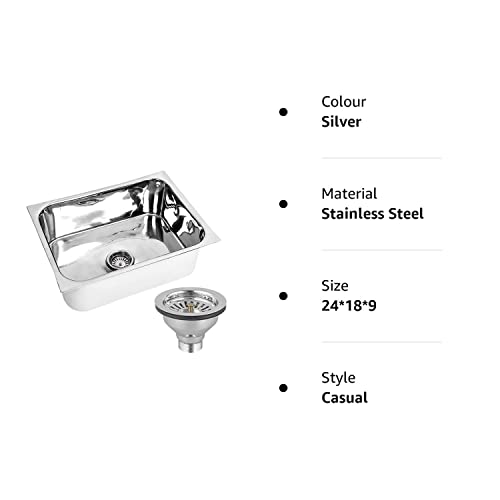 ATC kitchen sink made up of heavy gauge fully mirror polished steel , the box contains a coupling and a sink its dimension is 18 inches width, 9 inches height, 24 inches length. ATC Stainless Steel Kitchen in glossy finish and std design. New and Top of the range Polished stainless steel to prevent rust Simple to use & Easy to remove & clean Use .Prevent blockages, No more blocked sink , bath or basin Great kitchen ware for home use.sink is sure to change into the primary attraction of your kitchen and convenient Radium Stainless Steel Kitchen Sink which is indeed a smart combination of style and efficiency. Cleaning utensils and washing vegetables or fruits is an easy task with shape of these kitchen sinks. For a value to each penny to spent, owing any such kitchen sinks is very necessary. Sink resists scratching and withstands the on a regular basis wear and tear your sink endures, keeping it searching for longer. This amazing stainless steel sink is brought to you by Radium is suited for solid surface countertop materials like granite, soapstone, marble, or concrete. The features in this kitchen sink are strong and discreet and suit every contemporary kitchen.stainless steel kitchen sink, a basic necessity in every modern kitchen. ATC sink is easy to use and deal with, hygienic and resists stains, chips and scratches. It is perfectly suited for kitchens with limited space.